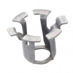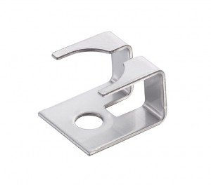 Stainless steel fixing clip made by stamping and bending operation into a progressive tool under press.