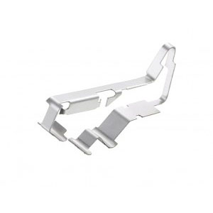 Multi function terminal and leadframe in stainless steel, two symetric sun visor components are made in the same tool.