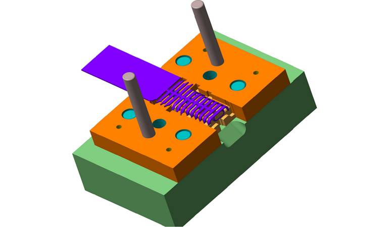 Les composants sont fabriqués sur presse grâce à nos outils à suivre, conçus et fabriqués spécifiquement pour nos clients, permettant ainsi pas après pas de fermer l’anneau puis de le séparer de la bobine matière.